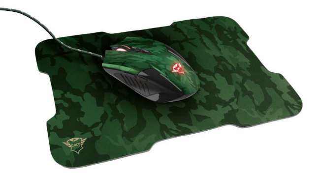 Preciso mouse gaming illuminato a LED e tappetino per mouse, con un'estetica mimetica