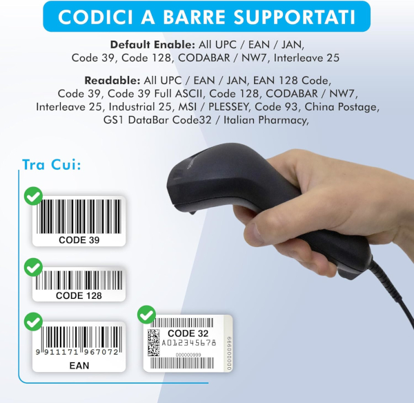 Supporta tutti i barcode compresi GS1 Databar e Italian Parmacy