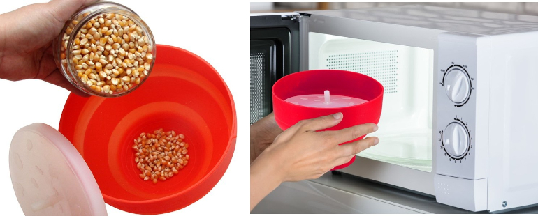 Cuoce in microonde in modo salutare e veloce i popcorn al naturale o conditi con ingredienti quali sale, zucchero, cioccolato, formaggio, burro od olio