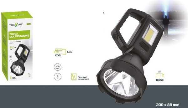 TORCIA RICARICABILE LED COB CON MANIGLIA 100M 3W 800MAH NERA TK2835