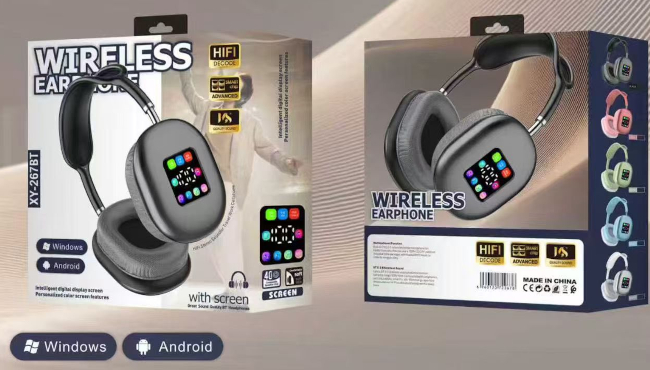 CUFFIE BLUETOOTH 5.3 CON DISPLAY LCD TOUCH NERE