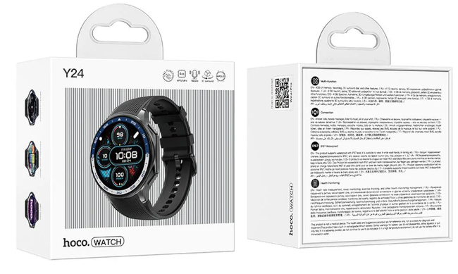 L'elegante smartwatch Hoco Y24 e' perfetto per il lavoro, la casa, i viaggi o l'allenamento. E' dotato di uno schermo AMOLED a colori, modalita' multi-sport, monitoraggio della frequenza cardiaca, della saturazione dell'ossigeno nel sangue e del sonno. Permette di effettuare chiamate, gestire le connessioni, visualizzare i contatti e leggere e rispondere a messaggi e notifiche