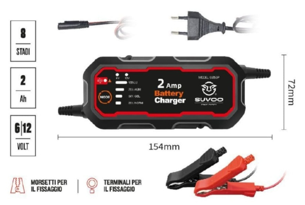 CARICABATTERIA PER BATTERIA AUTO/MOTO 12V 2A