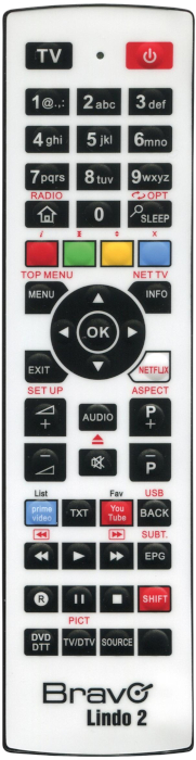 Telecomando universale per dispositivi TV, DVD, SAT, DTT o SKY dotato di superficie sanificabile ideale per ospedali, hotel, alberghi, comunità