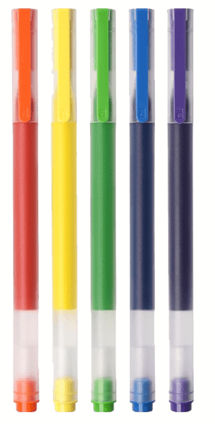 5 penne a inchiostro gel Xiaomi (blu-verde-arancione-gialla-viola)
