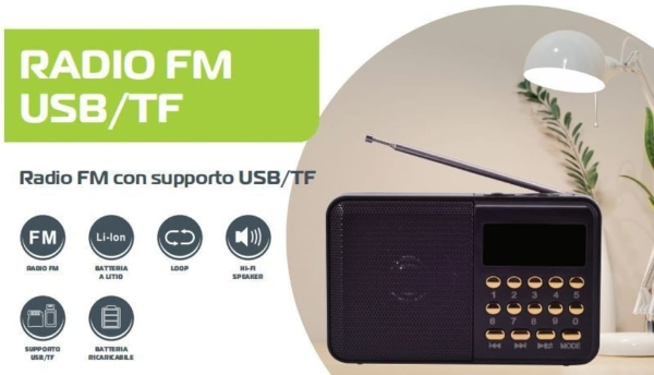 RADIO FM RICARICABILE CON SUPPORTO USB/MICROSD NERA CR-380