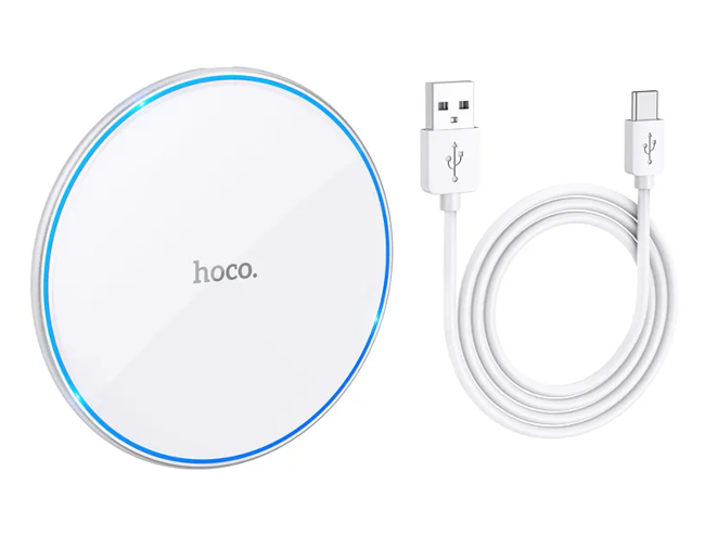 CARICABATTERIA INDUTTIVO USB-C HOCO CW6 PRO RETROILLUMINATO 2A 15W BIANCO