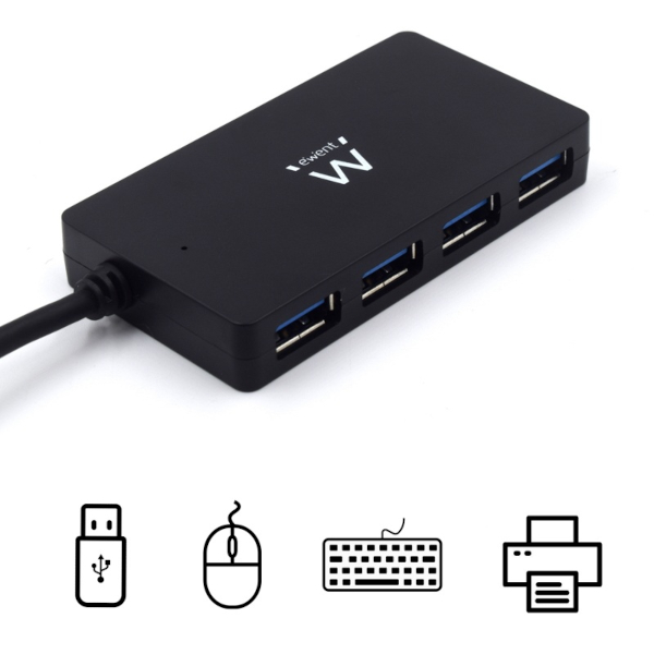 HUB USB CON 4 PORTE USB 3.0 E ALIMENATORE NERO