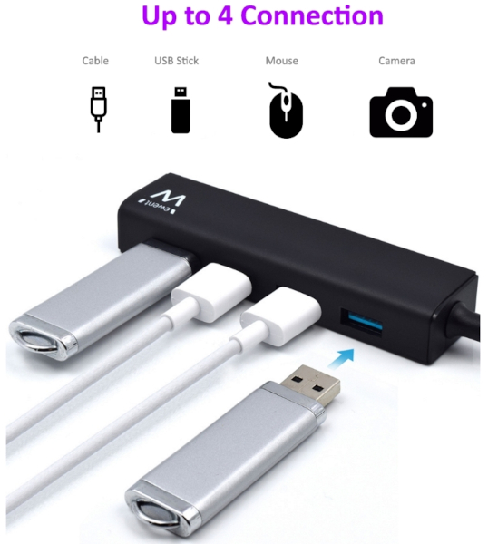 HUB USB CON 4 PORTE USB 3.0 E INGRESSO ALIMENTATORE NERO