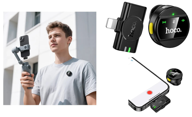 Il microfono wireless Hoco L21 con ricevitore lightning è una soluzione compatta e moderna per la registrazione e lo streaming sui social