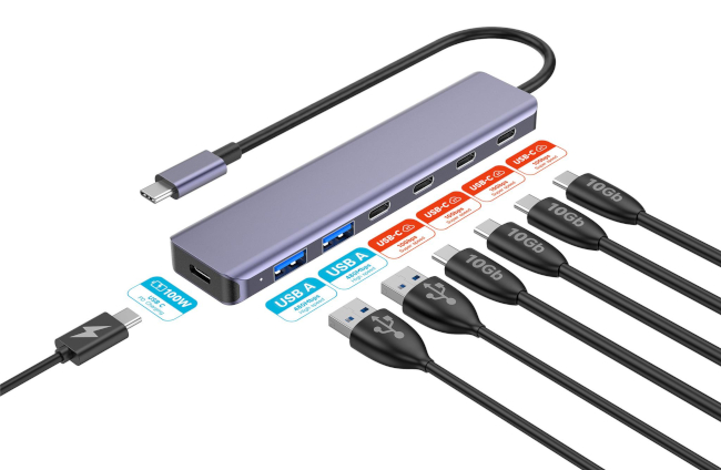 Velocità di trasferimento dati estrema: 4 porte USB-C 3.2 offrono velocità di trasferimento dati incredibilmente elevate fino a 10 Gbps, garantendo trasferimenti rapidi di file, foto e video