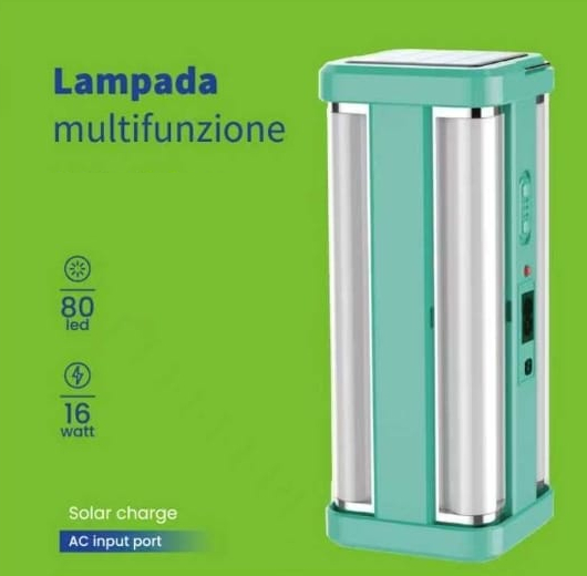 LAMPADA MULTIFUNZIONE 80 LED 16W CON RICARICA SOLARE + INGRESSO AC