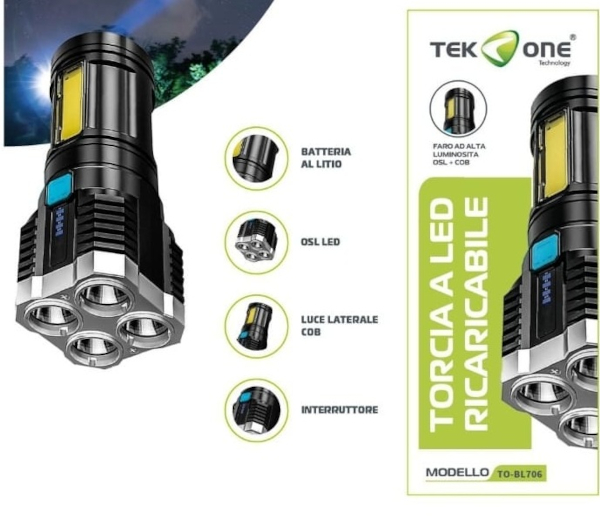 TORCIA RICARICABILE LED OSL + COB 24X15CM NERA TO-BL706