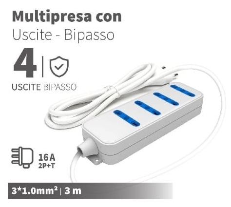 MULTIPRESA A 4 USCITE 16A 250V MAX 3680W 3M