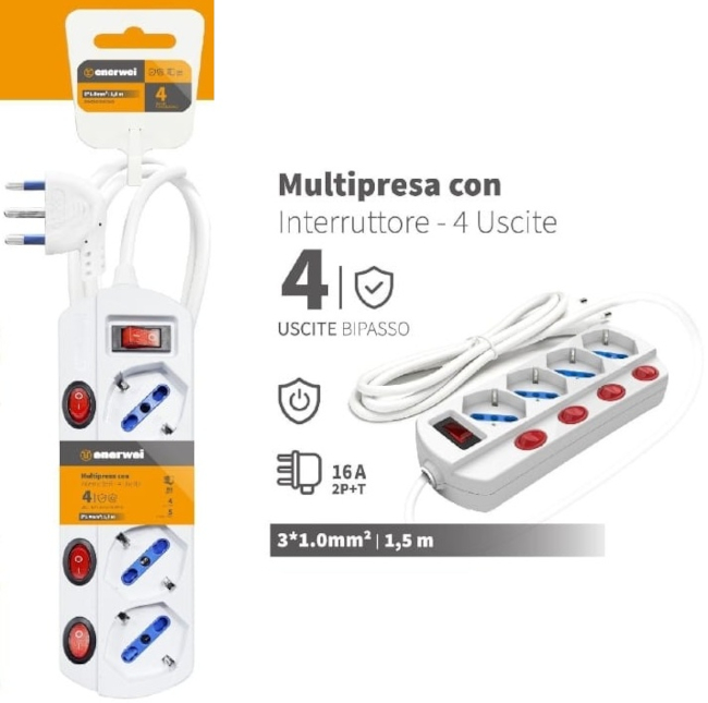Numero di uscite: 5 prese pluristandard 16A 250V