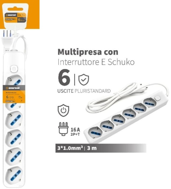 Numero di uscite: 6 prese pluristandard 16A 250V