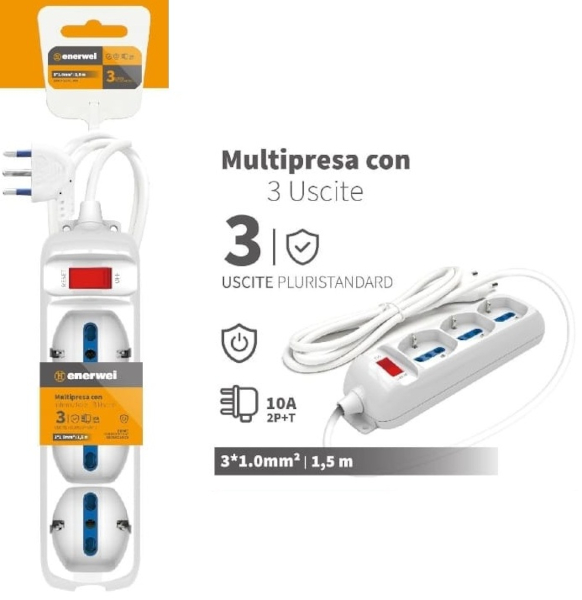 Numero di uscite: 3 prese pluristandard 10A 250V