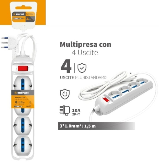 Numero di uscite: 4 prese pluristandard 10A 250V