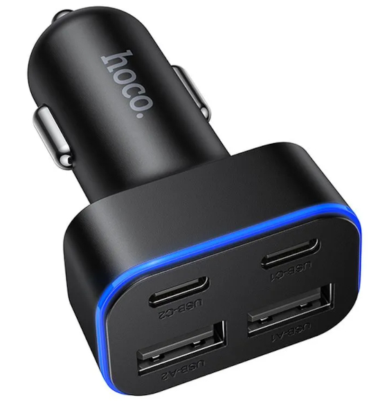 Il caricabatteria da auto Hoco Z63 con funzione di ricarica rapida e quadrupla uscita (2x USB e 2 x type-c) consente di caricare rapidamente i dispositivi mobili in auto